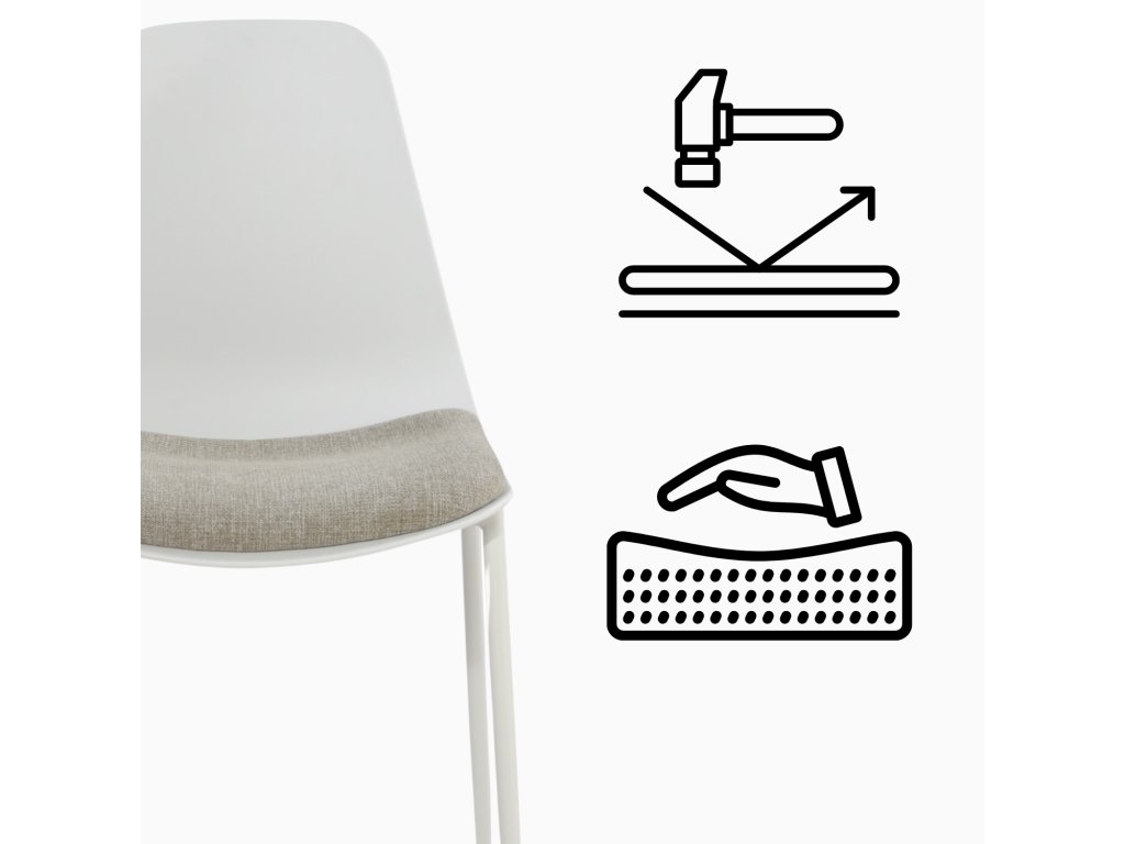 - Materiál: pevná kovová konstrukce a čalouněný sedák z odolné látky – příjemné na dotek, snadno udržovatelné.