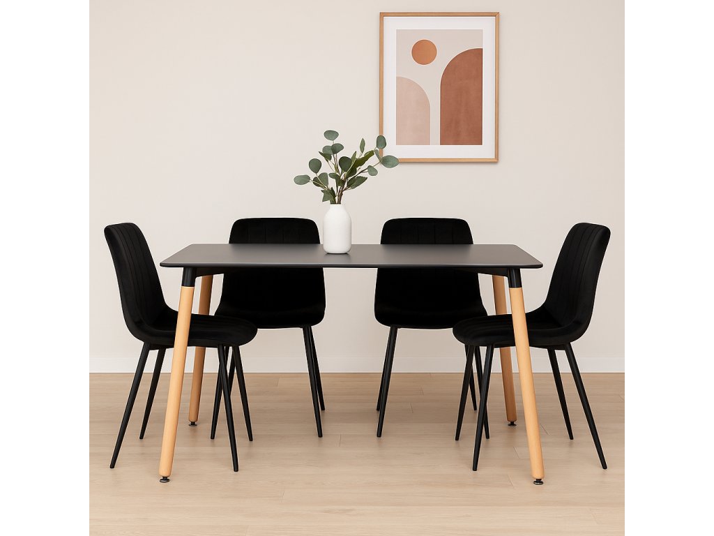 Stylová harmonie: Minimalistické linie stolu doplňují elegantní tvary židle, dohromady tvoří set vhodný jak do jídelny, tak do kuchyňského koutu.