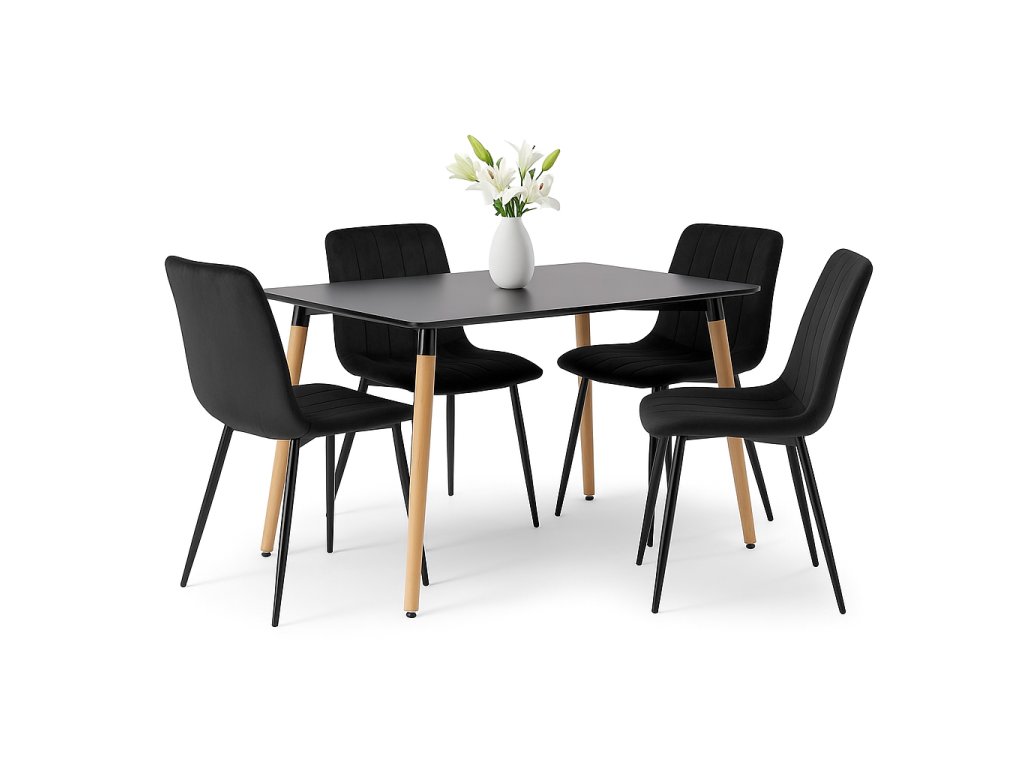 Kontrast barev: Bílý stůl Marko a černé židle Lucca vytváří elegantní a moderní kontrast, který vynikne v každém interiéru.