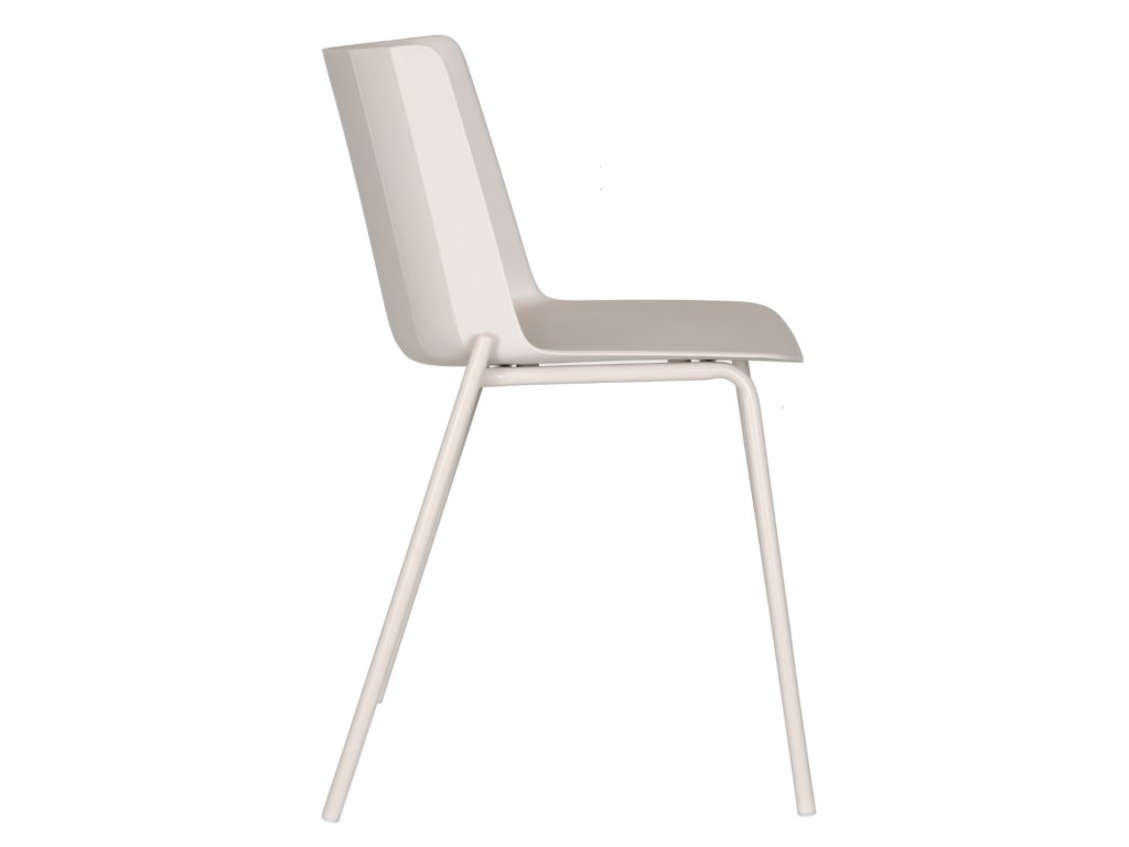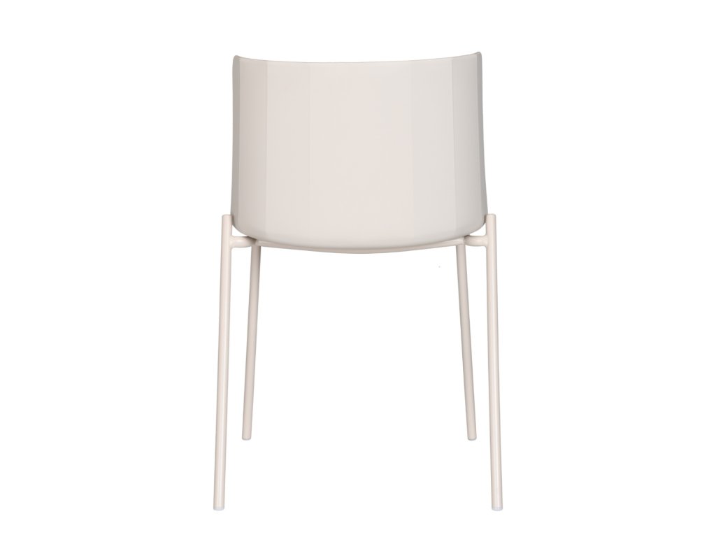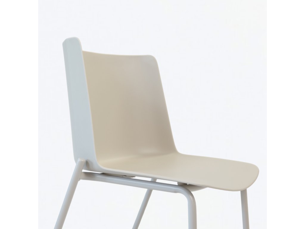 Jídelní židle CARMI v béžové barvě kombinuje moderní minimalistický design s pevnou kovovou konstrukcí a odolným sedákem z kvalitního polypropylenu (PP). Hodí se do domácností, kaváren i kancelářských prostor.