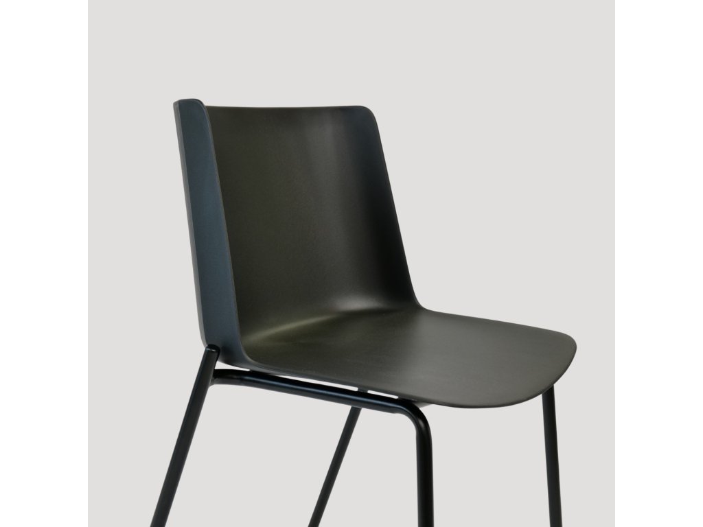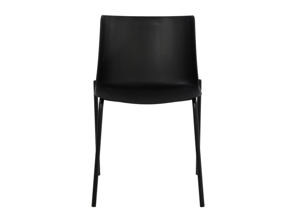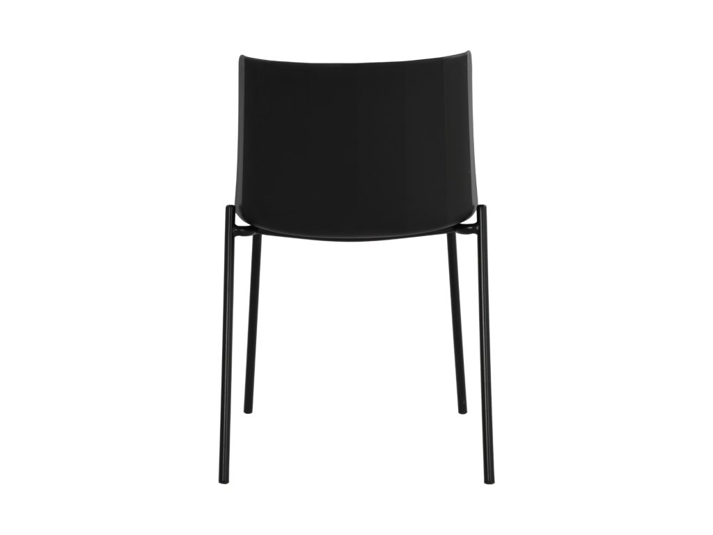Jídelní židle CARMI v černé barvě kombinuje moderní minimalistický design s pevnou kovovou konstrukcí a odolným sedákem z kvalitního polypropylenu (PP). Hodí se do domácností, kaváren i kancelářských prostor.