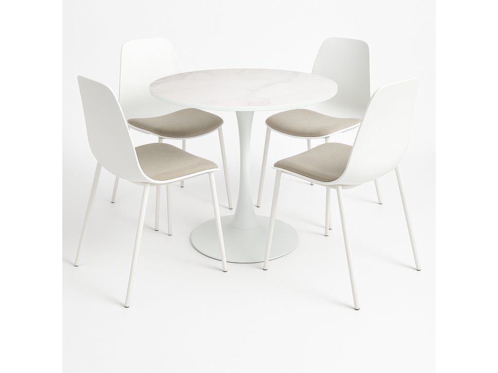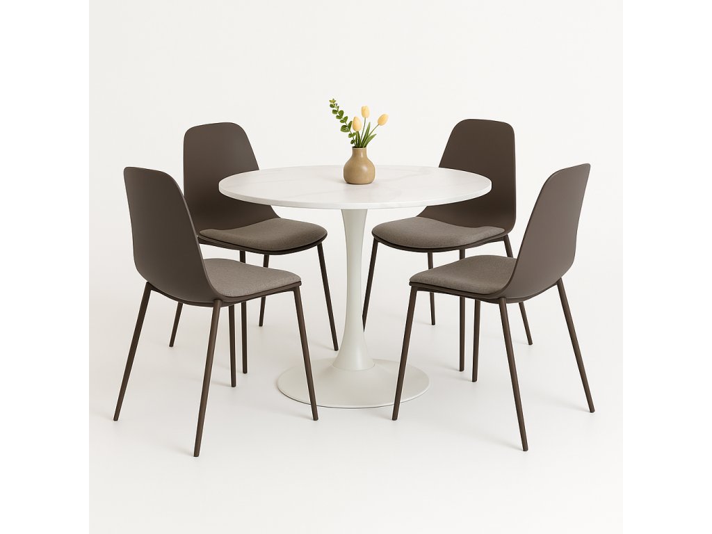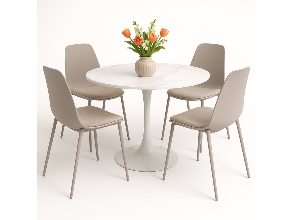 Chcete kompletní jídelní set, který je praktický, elegantní a k tomu za super cenu? Tohle je přesně ono! Ke čtyřem designovým židlím Boreta od nás získáte kulatý stůl Beluga Ø 80 cm úplně zdarma 🎁.