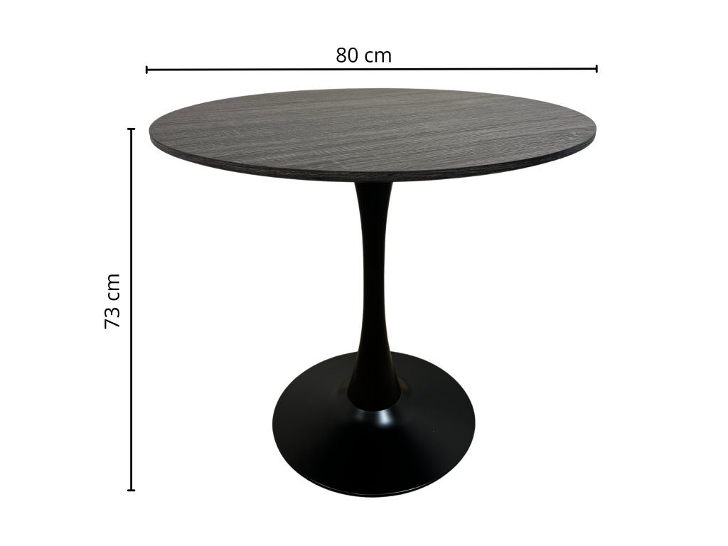 Rozměry: průměr 80 cm, výška 73 cm – ideální pro 2–4 osoby