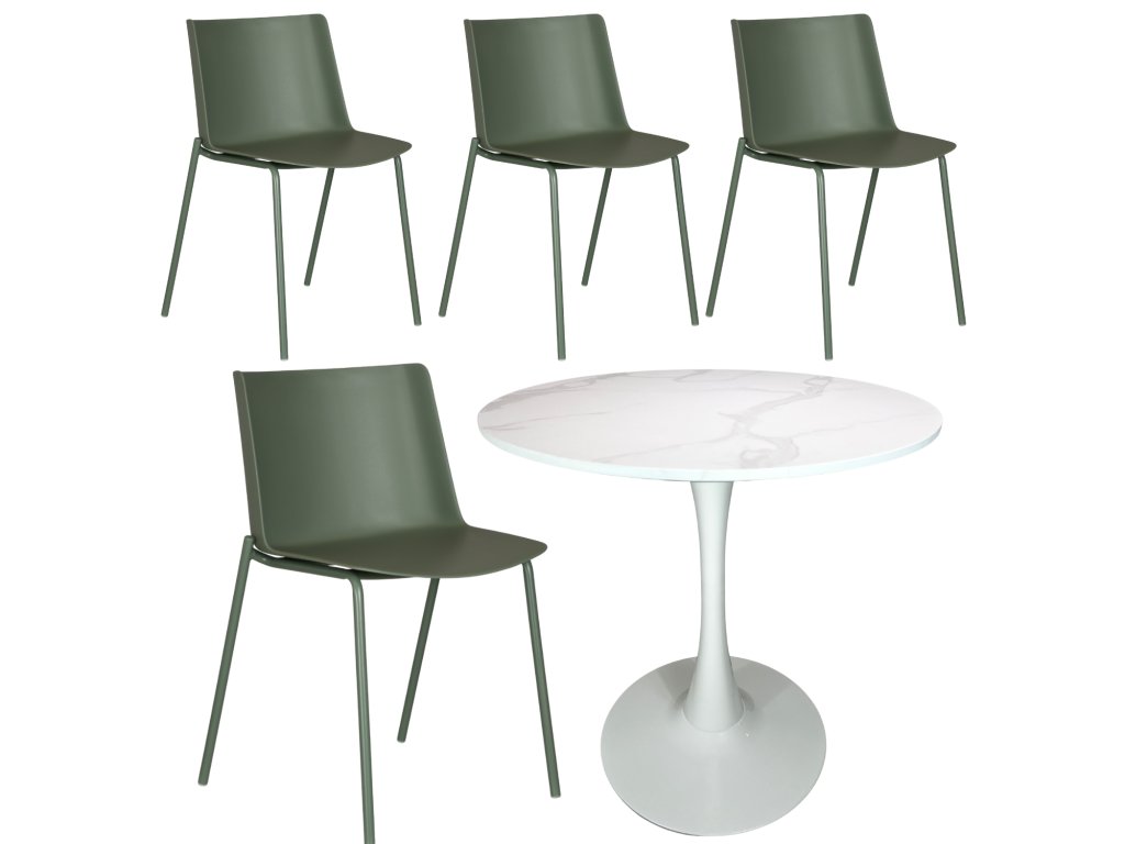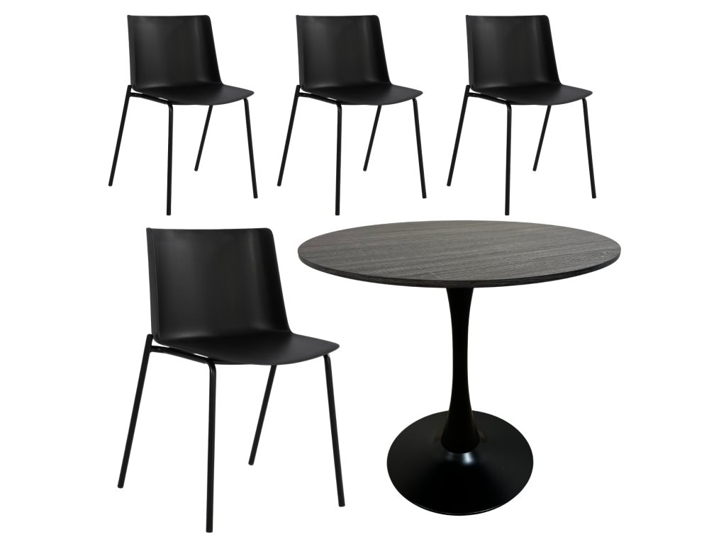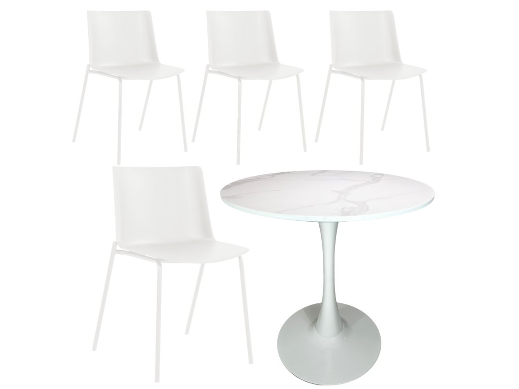 Chcete kompletní jídelní set, který je praktický, moderní a k tomu za super cenu? Tohle je přesně ono! Ke čtyřem designovým židlím Carmi od nás získáte kulatý stůl Beluga Ø 80 cm úplně zdarma 🎁.